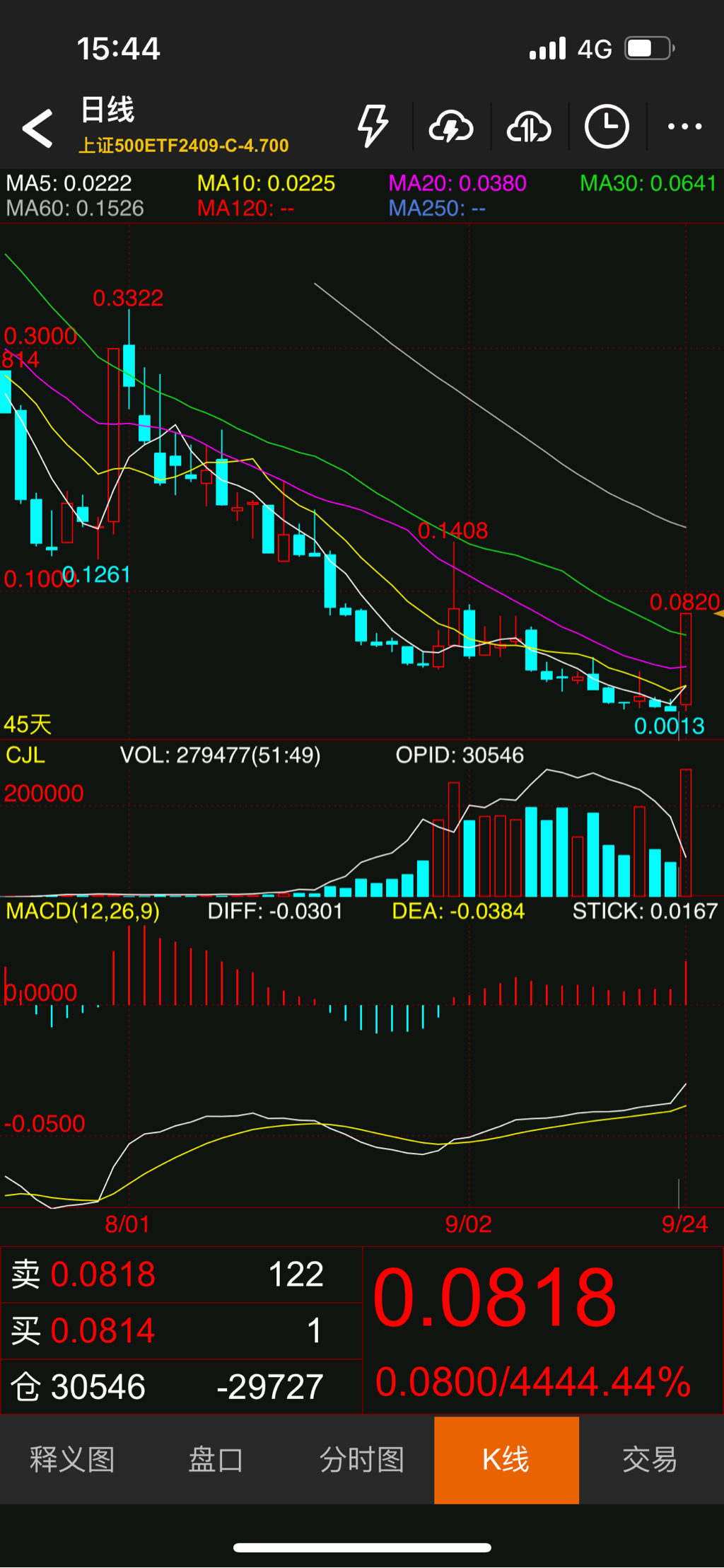 下跌卖沽,上涨卖购,从结果来说是成功的,包括你9月卖沽的MO4400,最后也归零了,过程嘛可能有点复杂对吧。毕竟9月18日中证1000指数创出了4342.21的新低,然后第二天反弹到4527.61。我是买沽MO4400止盈跑了,最后一张买沽MO4350和IO买沽3150归零了,这次比例价差也是一波三折最后只是略有盈利,包括卖购MO4500我也是反弹时候没留。卖方没有必要拿到最后到期,书上说过双卖合...我也觉得他这个操作风险很大,收益有限,而且还没有保险,收益和风险不对等。现在接近年末,1000和500已经6个季度连续下跌,在接近20年历史上也是绝无仅有的,接下去无论向下猛烈一跌还是向上逆转都很容易翻车。