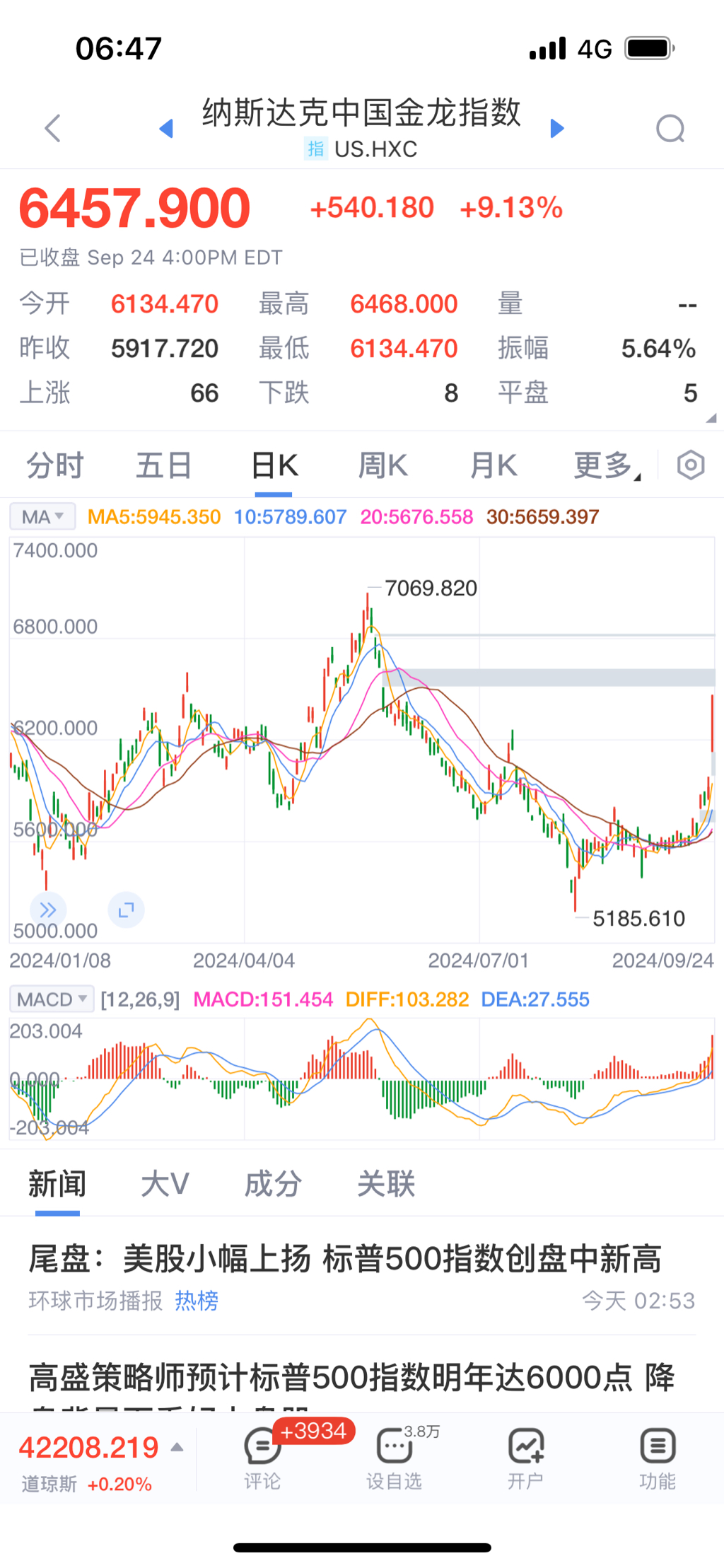 5、流动性问题:2700点到3000点这个空间估值便宜,流动性折价和情绪极度悲观,现在这个问题被解决了,潘哥放出5000亿,这里我认为托的作用大于举,2700可以互换借钱来买股票,3000点往上就不好说了。但是这个政策一出对大家的信心恢复作用是巨大的,今天政治局会议定调更是强化了预期,可以认为下有底了。另外美联储降息50个基点以后开启降息周期,我们资金外流的压力也没那么大了,汇率都回到7了。流动性好转,今天成交又是万亿以上,海外ETF折价这个也很有意思,说明钱向A股回流了。还有报道说海外资金已经开始大力买入中国资产,港股十连阳就是证明。