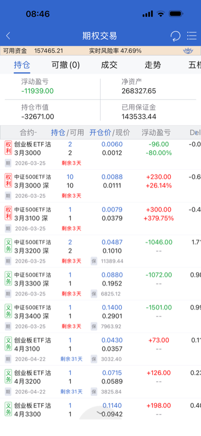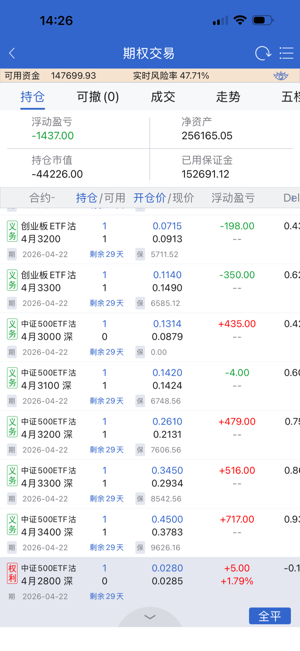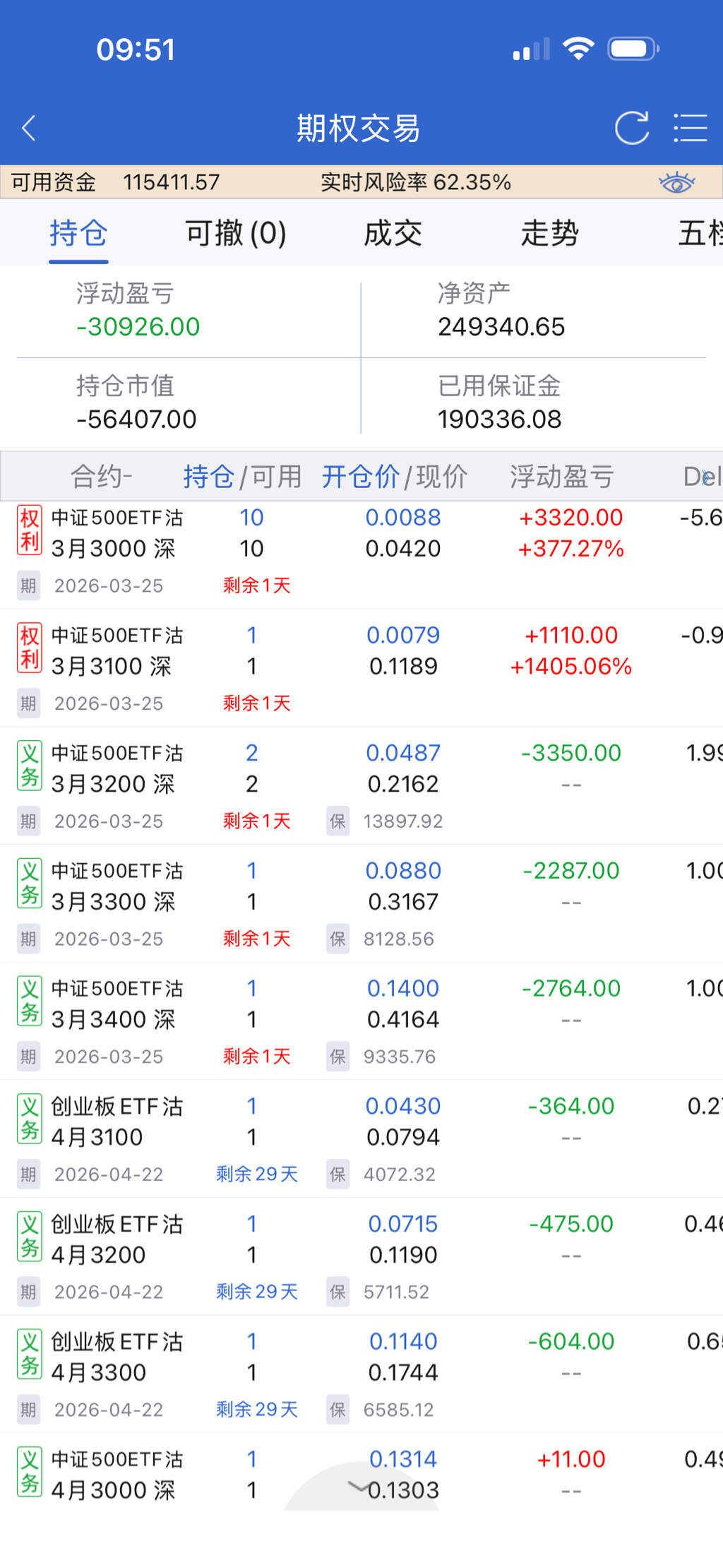 节后ETF期权也要到期了,分批移仓。这个账户增加了300和50的卖沽持仓,双创保持底仓卖沽,500是价差持仓,买沽目前是500,年后再逐步增加买沽的数量。