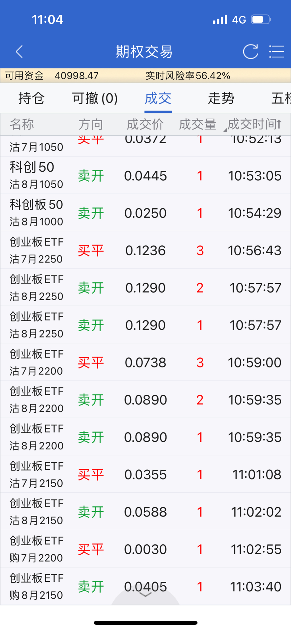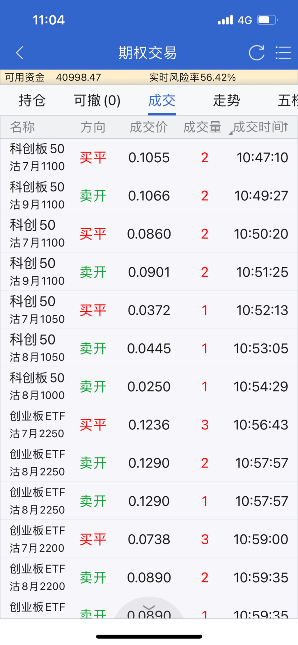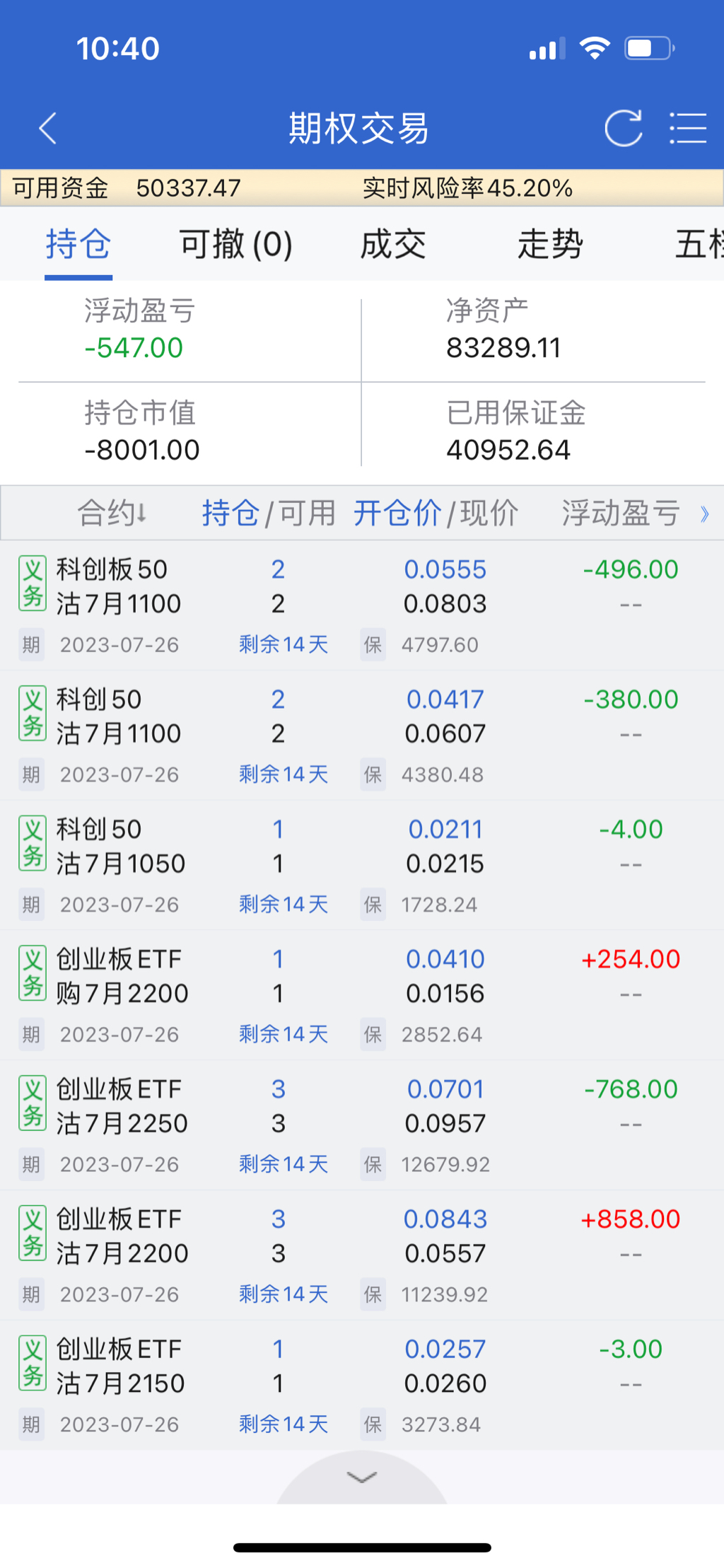 6.今日科创50新低960.29,按计划左侧交易加仓。现持仓创业板etf期权卖沽7张,卖购1张,科创板卖沽期权6张。