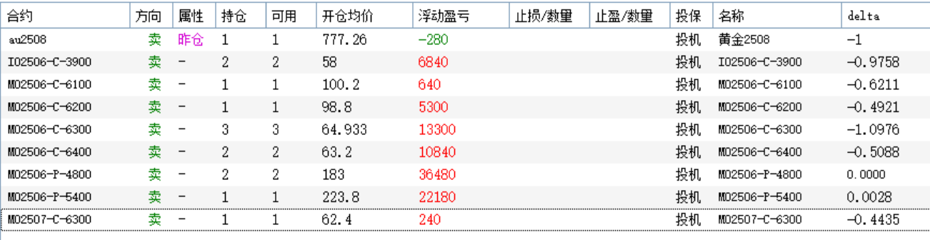 高波情况从去年924之后我基本的持仓是牛三腿结构,双卖加买购,总体来说是做多和做降波。最近几个月卖购比较少,波动率下来了加上趋势向上,卖购减少了仓位,波动率低就做多方向为主。这一轮上涨还算是比较舒服。例如实盘账户4月把卖购改卖沽之后就没有卖购仓位了,6月移仓之后很长时间都没有看账户。