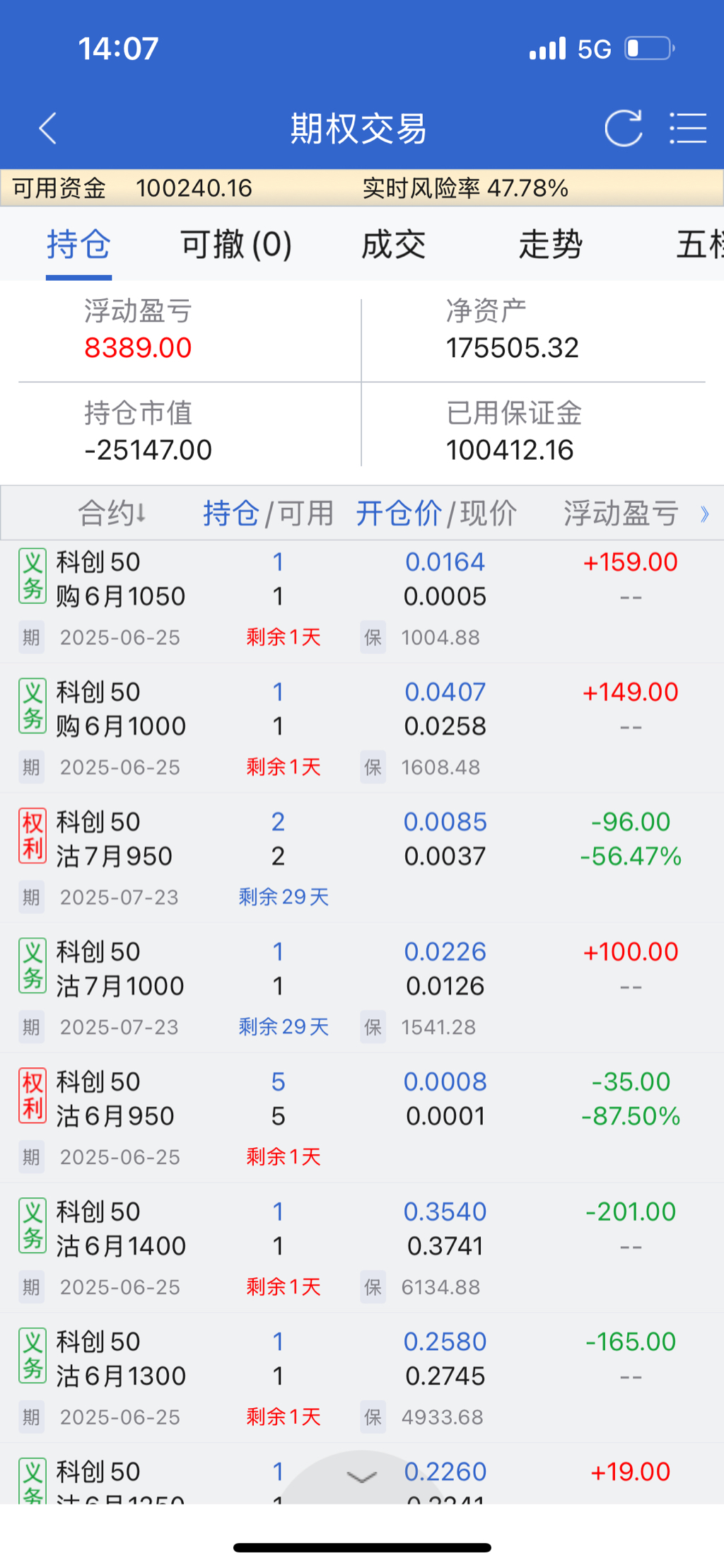 风险度下来了,反而期待有升波。6月买沽又要牺牲了,7月的反向比例价差观察仓维持盈亏平衡状态,低波就把风险度保持低位吧。