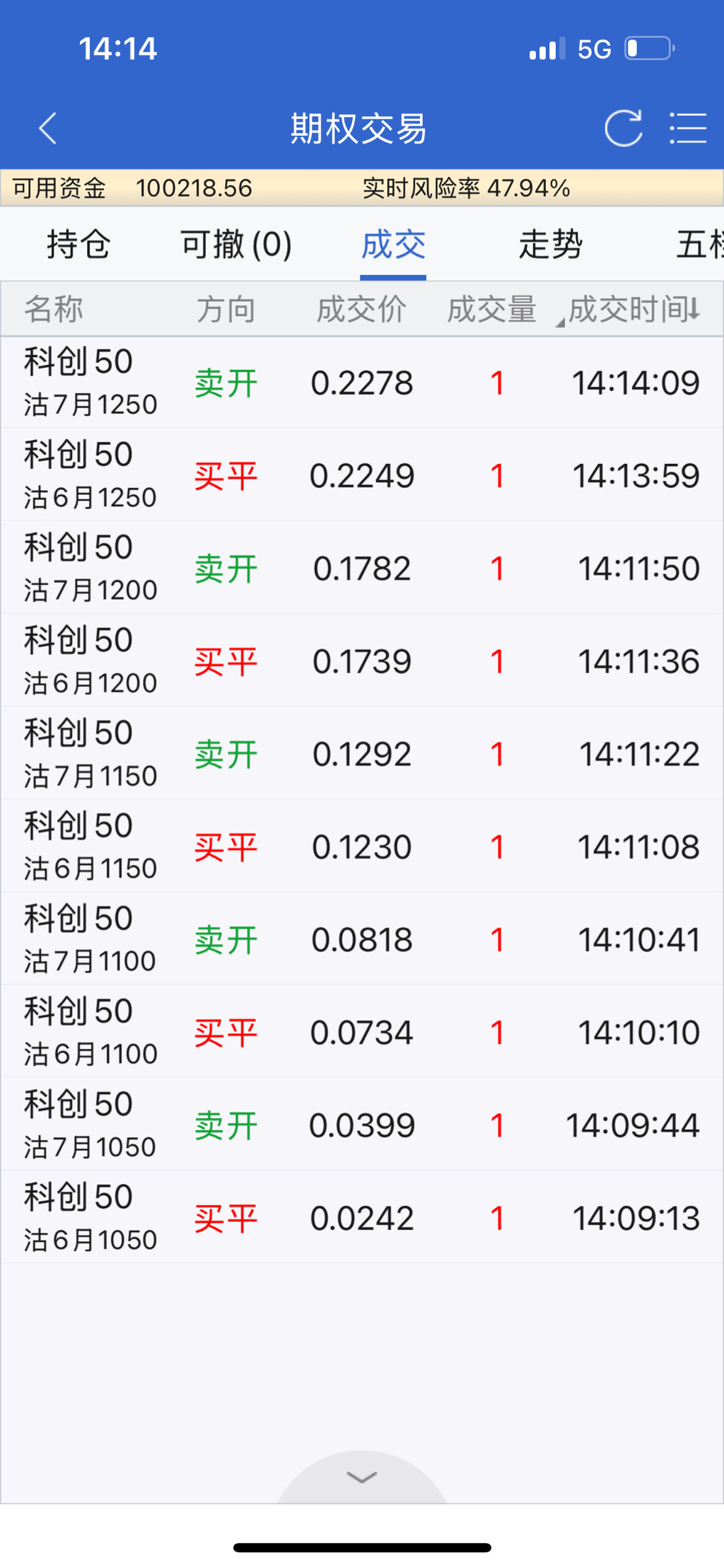 科创板的隐波也很低了,移仓收益聊胜于无,卖购下月平值只有134元钱,隐波都到20以下了,低波减少卖购,卖沽也不加仓了,平移就好。买购实值移仓远月是折价的,市场对科技热情不高。科创板最近几个月都在调整。