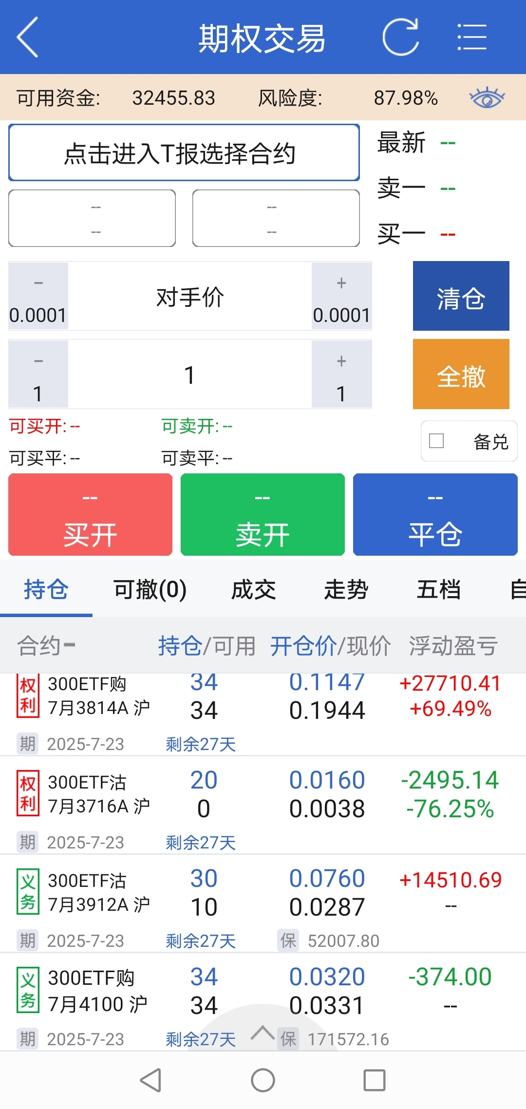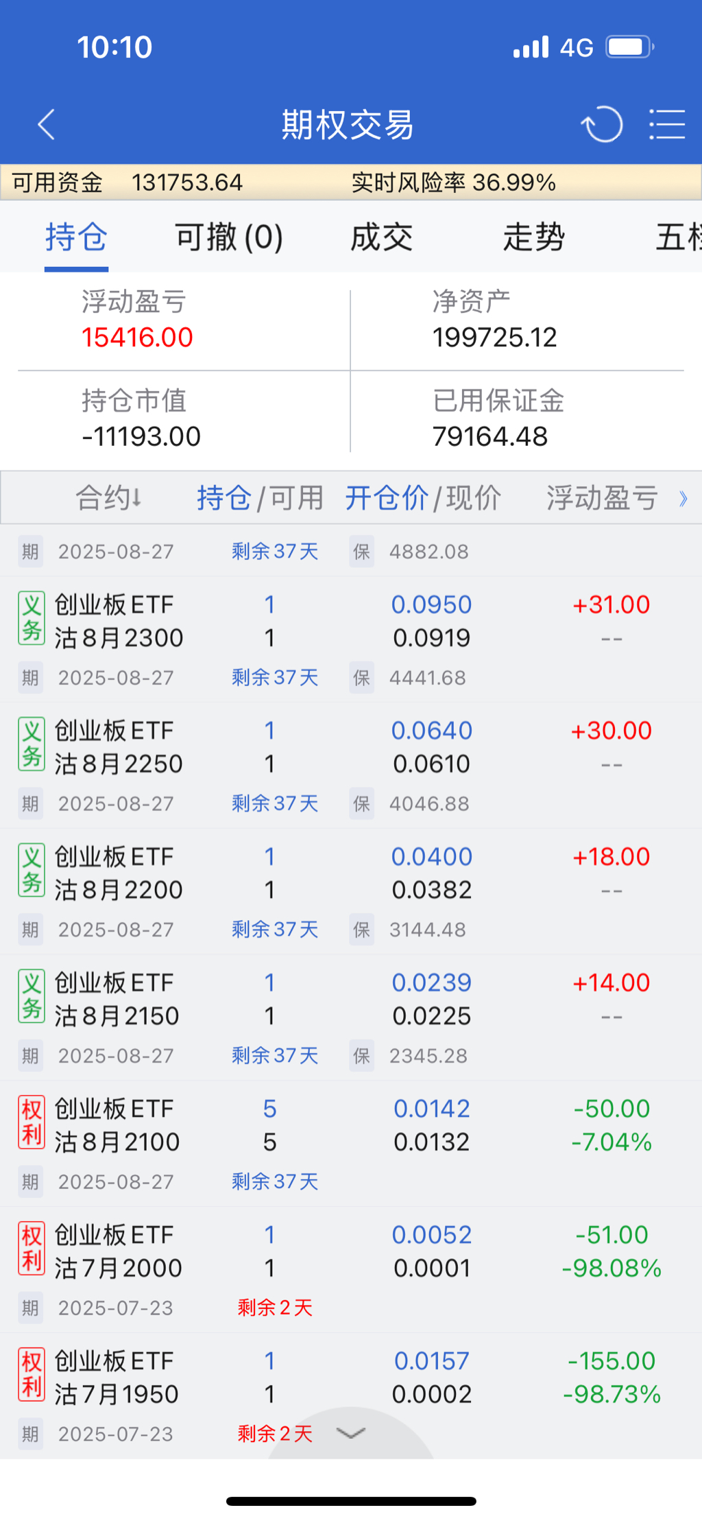 创业板移仓体感要好一些,就是7月合约只到2250,2300以上的深度实值合约我就直接往9月移仓了。创业板隐波也很低,卖购止盈就暂时不做了,卖沽加少部分买购保持不踏空就好。