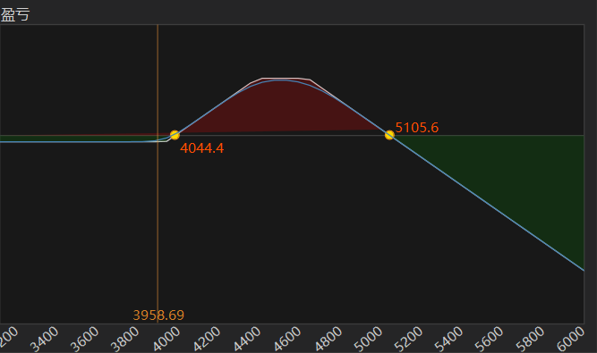 刚好还有一组实值买购5800和卖购6000,供参考。先不说前两个月高波的移仓,就看12月卖购6200移仓的落袋盈利和移仓2501合约以后的价差108,组合整体是浮盈状态了,现在继续留着牛差。再移仓两次到3月肯定是不可能亏损的了,就看移仓的价差决定收益。老师这个移仓是12月卖购6000移仓到1月卖购6000吧,如果1000继续上涨到6400,那1月MO6000卖购不是浮亏变大了吗,3月5800购能覆盖这个6000卖购的亏损吗,有点看不懂了