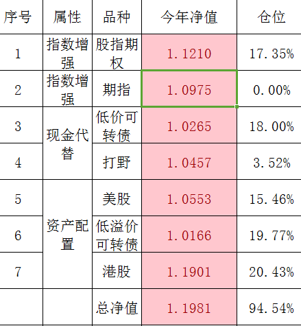 本周操作:除了按期调仓以为,本周基本上无操作。