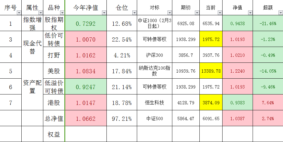 本周净值1.0662 ,仓位 97% ,跑赢中证500约2.74% 。