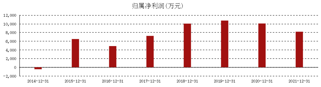 公司业绩如下图,2019年是顶峰,2020、2021、2022年都略有下降。跟行业的整体大趋势是吻合的。行业下行,公司难以逆势上行。2022年业绩大概6千万元。公司的营业收入跟业绩是同步的,图形的趋势类似。