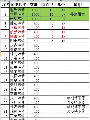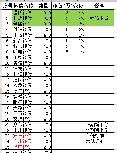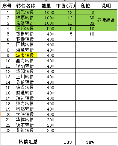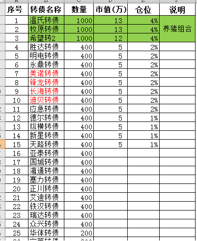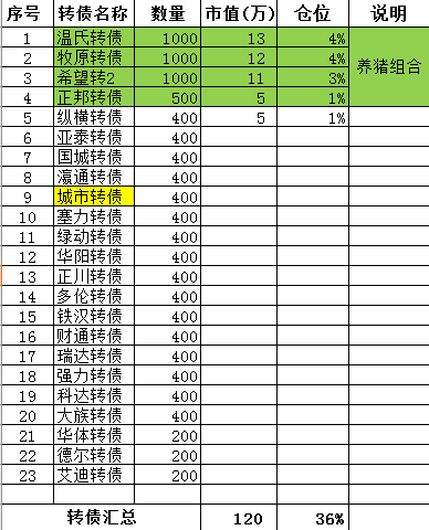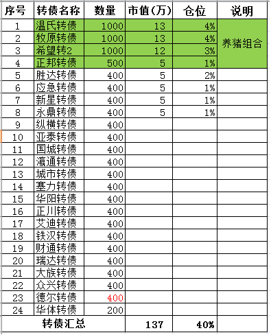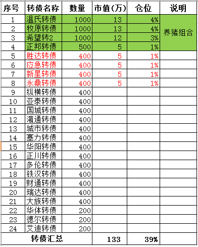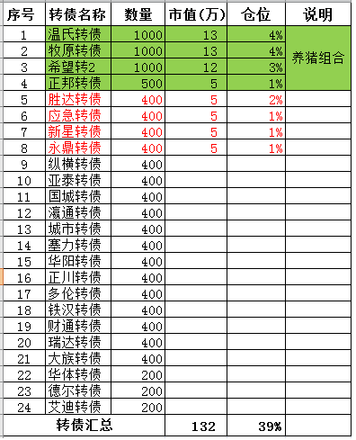4个养猪可转债构成一个组合,占13%的总仓位,为了抓住这一轮猪周期。