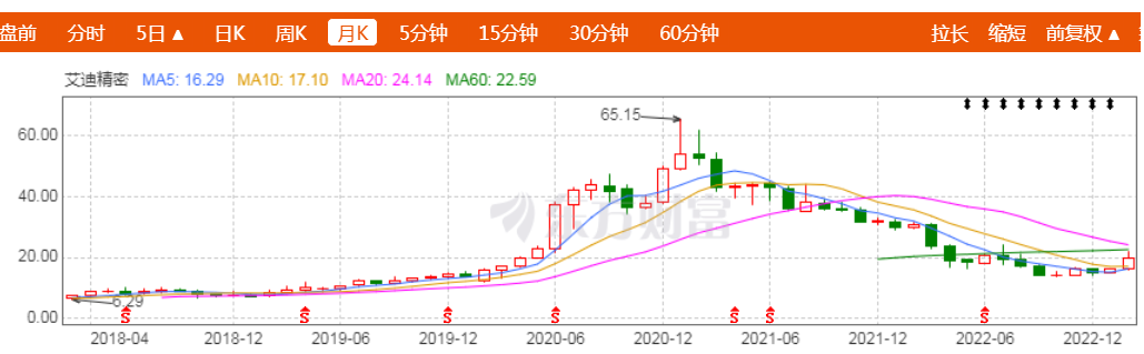 公司上市的月K线总体走势如下,现在股价处于上市来的最低位,下跌有限。