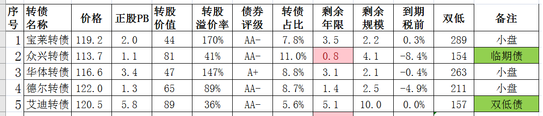 其次是清仓正川转债,换成凯中转债。正川转债的溢价率太高了,属于惰性转债,只能寄希望于下调转股价!凯中转债符合5低标准,除了到期年限外,符合六低标准。