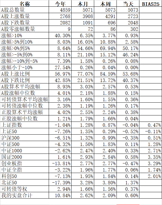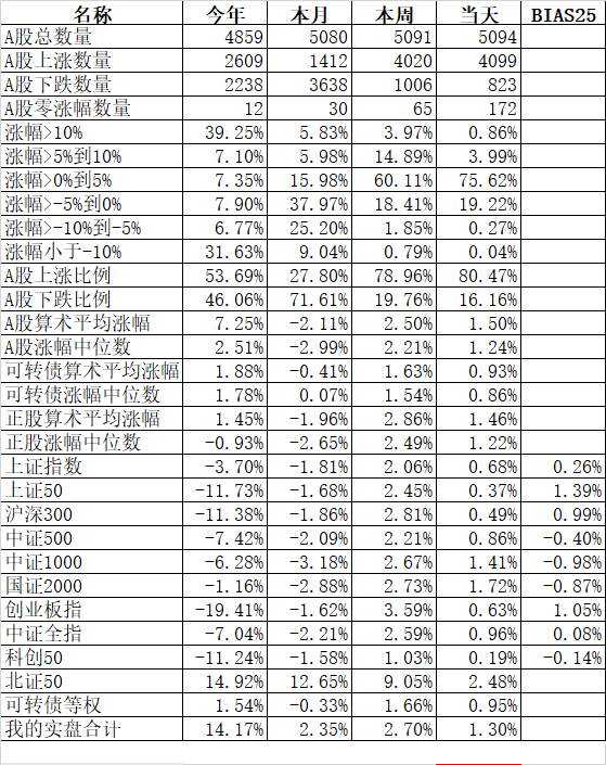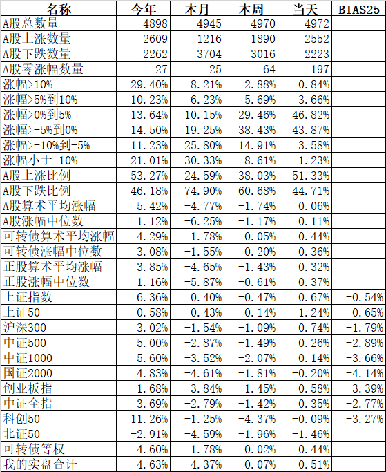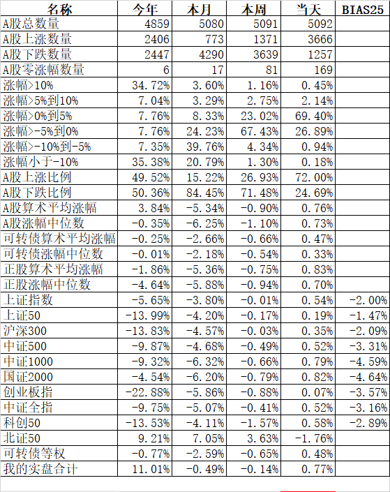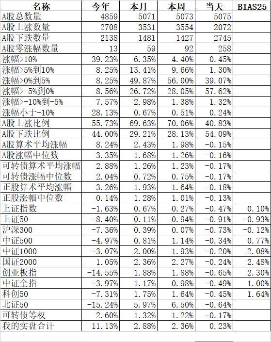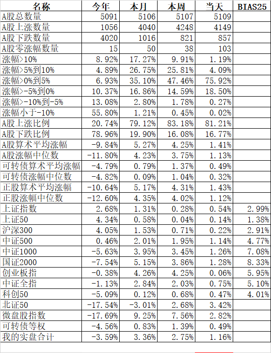 其次,你以为长时间死拿微盘股依然收益会爆棚?太天真了,建议你在排ST,排北证后,看看那些微盘股今年的涨跌有多少,到底是死拿微盘股依然收益会爆棚,还是微盘股因轮动而收益爆棚可以简单地证明。