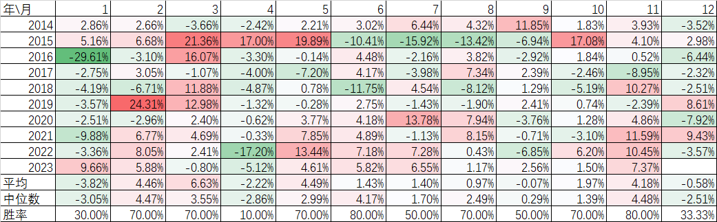 今天上午看到我的小市值股票趋势不好,最主要的原因是前几天我统计了微盘股的历史数据,最近10年来12月份的微盘股胜率只有33%,涨幅中位数为负的2.51%,和1月、4月是一年12个月里表现最差的3个月。