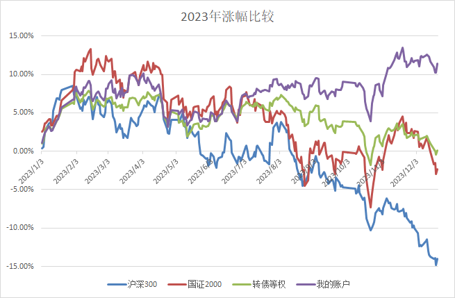 但还是有很多值得改进的地方。虽然全年都是采用了不超过130元的偏保守策略,除了冲击成本外,最大的影响还是心态。比如3月份大跌,虽然跑赢了等权和沪深300,但和其他5辣相比相差甚远。我记得当时也是跌的厉害,有一天换仓后我想反正天天跌,明天还要跌,所以卖出可转债后没有及时买入,造成了轻仓过夜,但偏偏第二天利好高开,心理一慌就追高了,结果冲高回落又造成了差异。还有就是12月份,加仓了小市值后连续几天小市值表现不佳,也影响了收益。