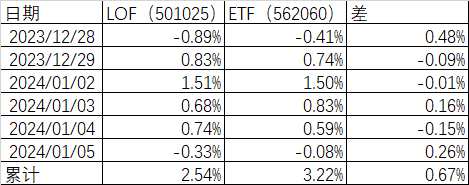 标普红利基金501025是LOF,效率相对ETF低点,最近推出了标普红利ETF(562060),这几天的净值增长对比如下: