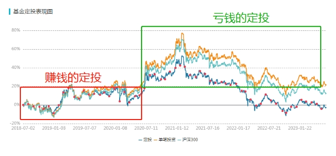 1:从2018年7月起,累计60个月的定投本身就已经错了。持续太长时间的定投忽略了指数本身的周期变动,都已经经过一轮牛熊周期了,当然结果不理想。
