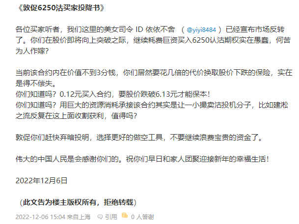 这是大道之争,涉及到我做期权的信仰。对别人的质疑不能回复是会影响到对自己的交易理念的信心的。那么多人跳出来说期权交易风险如何大,如何不可能简单赚钱,期权应该去交易波动什么的,关键是又没说错,如果对自己的交易策略没有信仰,或者对国家的发展失去信心,那就只会陷入迷茫之中,道心崩溃大概就是这样的,就会低位割肉。去年大会之后外资做空中国的疯狂不知道你们有没有感受,外网充斥着做空中国的言论,我跟在美国的同学...——权益仓位改用期权替代——其实不要看在争论,更重要的是每个人对期权的认识和操作