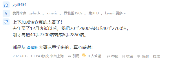 好了,不扯闲篇,说说实战。去年的实战在本帖正文已经回顾,今年1月扭亏保本解套,也正好在跟帖里的一场无所谓的争论后取得了战果。