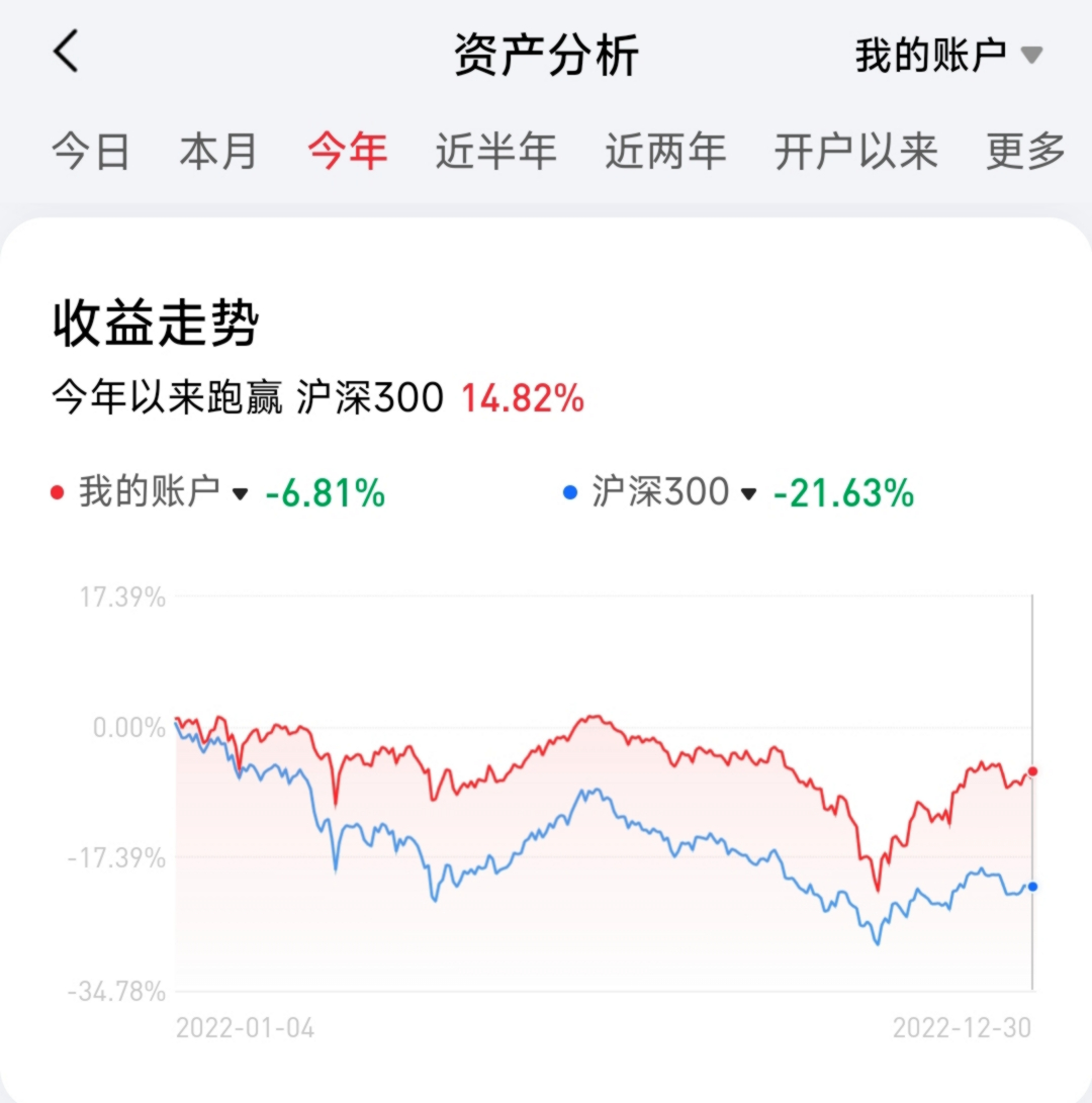 2022年最大的收获不是账面收益,而是对大众普遍认识之一“卖沽收益有限”的理念(就是所谓跑不赢大盘)进行了突破。