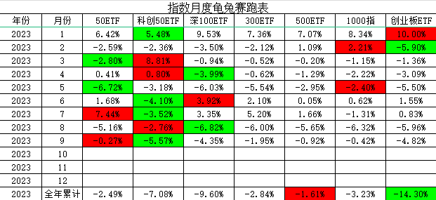 1:前面部分的数据是以年度为时间段各大指数的列示。从2018年底到2023年9月底。