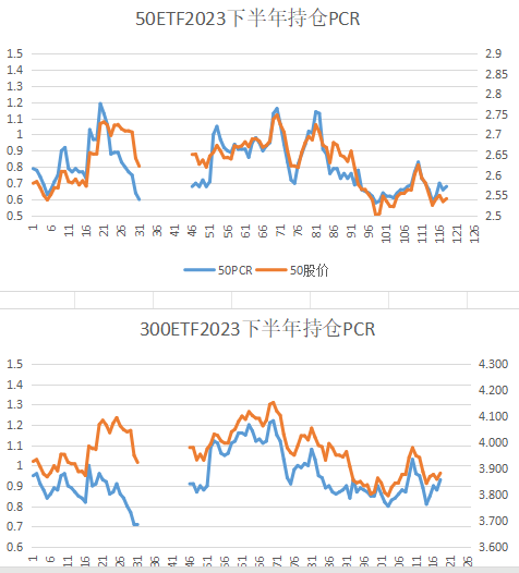 这是更新到昨天的PCR曲线。前半部分是7月至今的走势,后半部分是上半年数据做为对照。