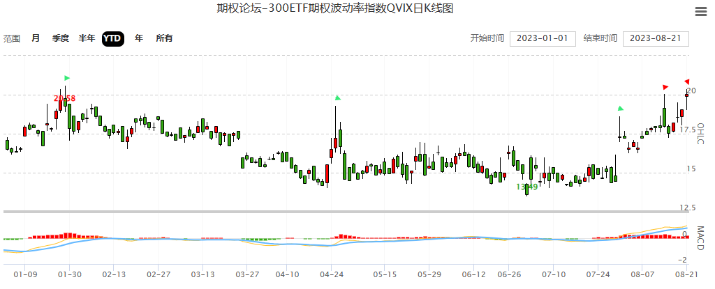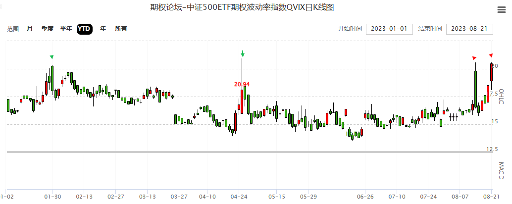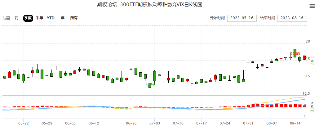 做为对照,同样补充300ETF的VIX图,里面多了一个时点,就是7月31日,预测为短期高点,事后证明也是正确的。