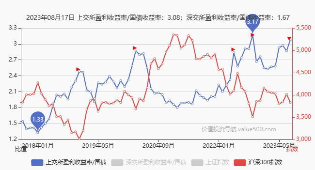 股债比曲线(蓝色线)指标再度来到历史高位。在历史上出现了4个阶段性高点分别是18年12月,20年03月,22年05月,22年10月,用红箭头标注了。对应的300指数都是阶段性底部!