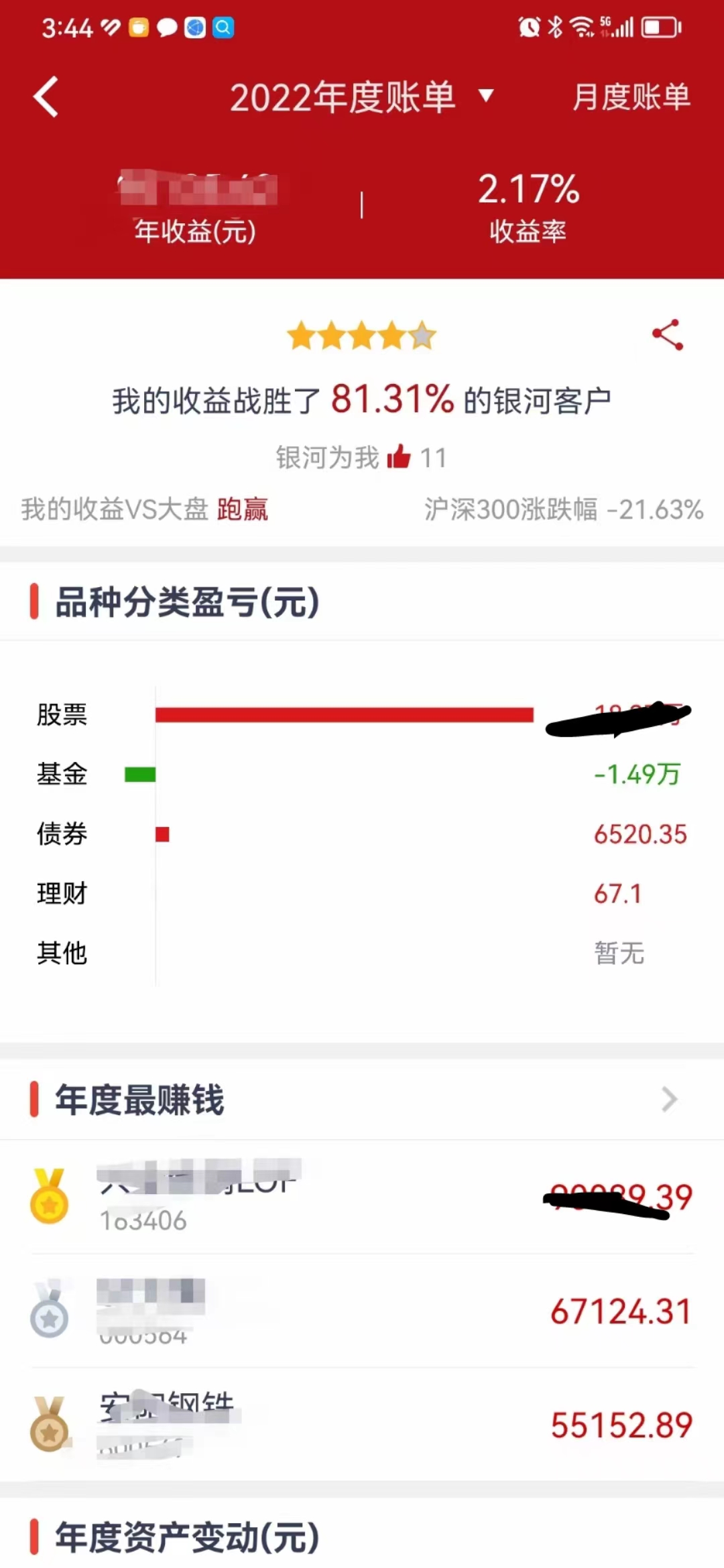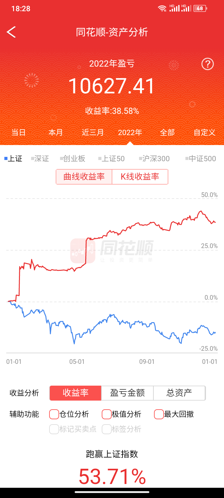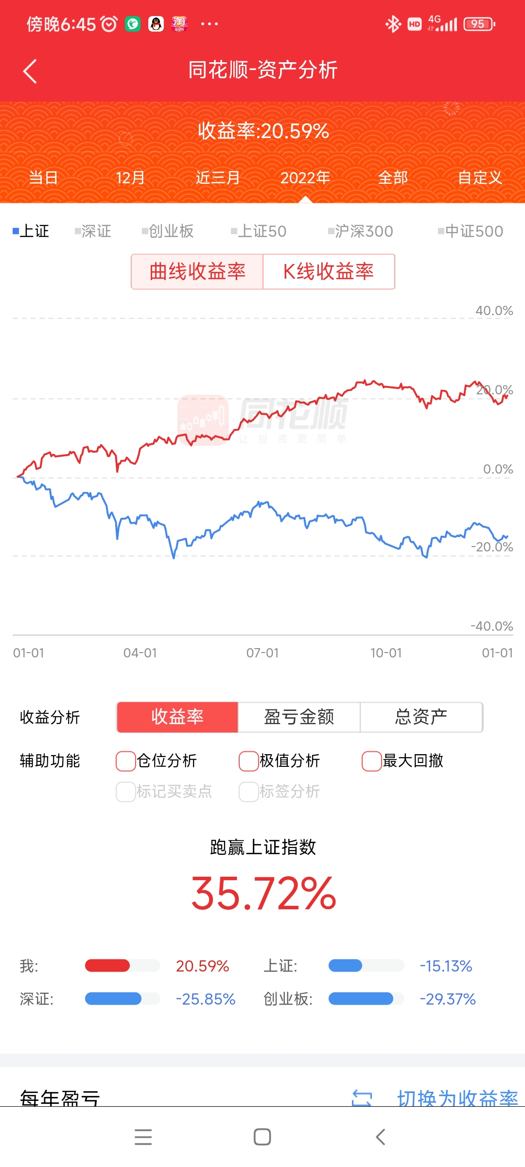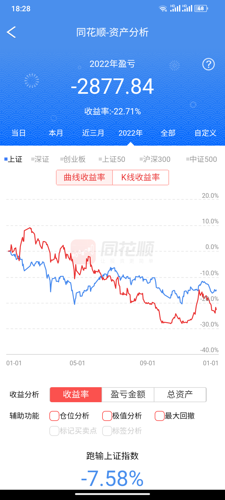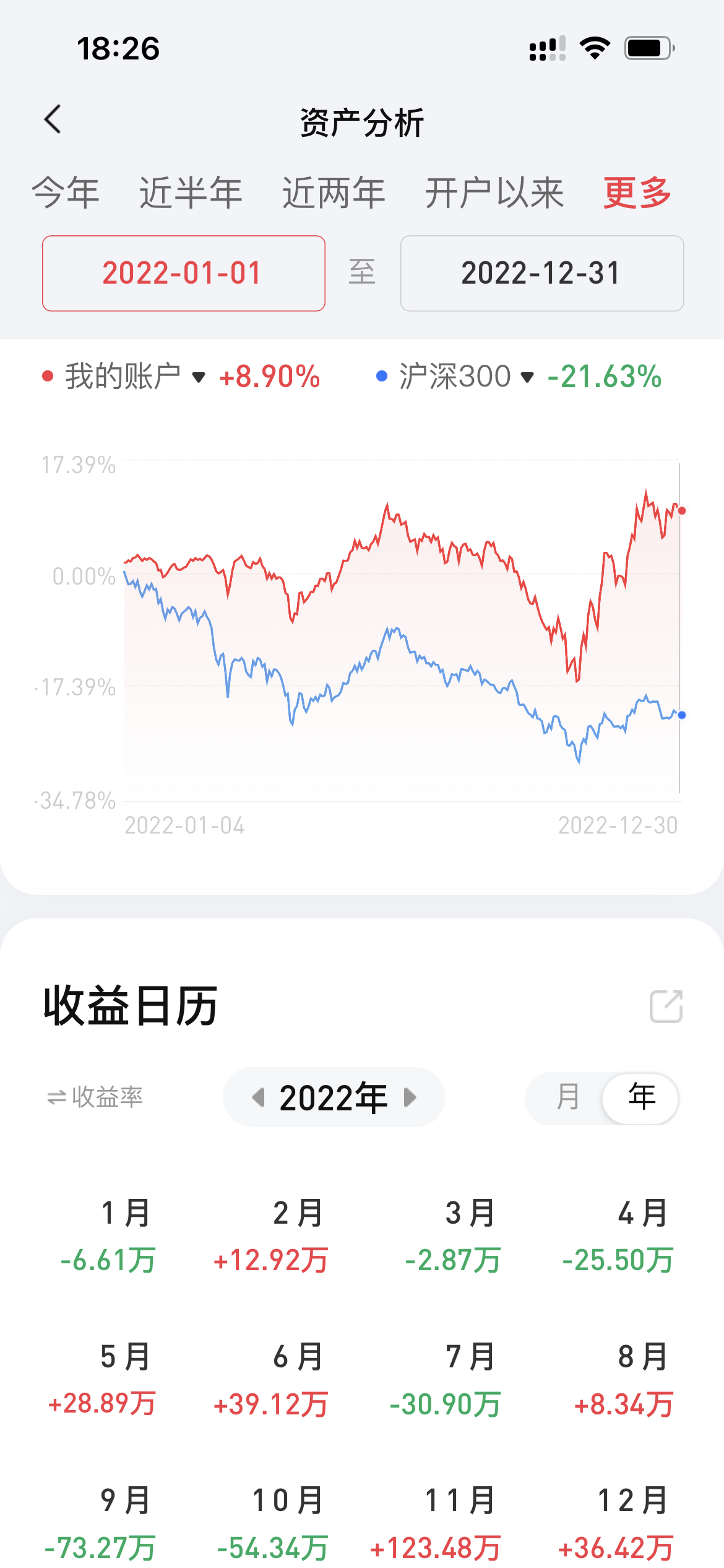 2022年券商账户统计的收益率18.81%,不过资金不多。2022年只做可转债,没做过股票。