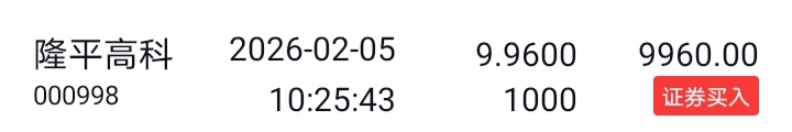 隆平高科买入1格。 2、脉冲交易