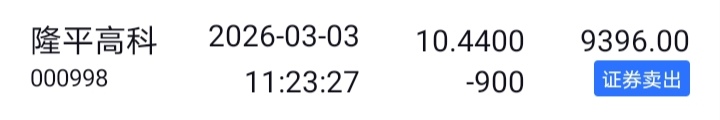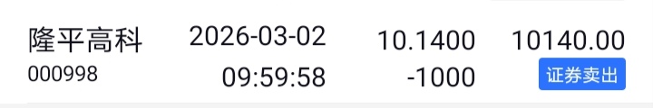 隆平高科买入1格,卖出3格。