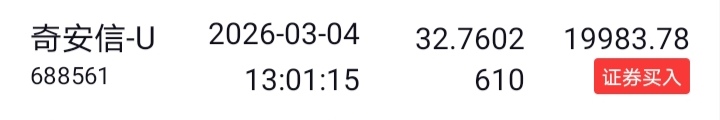 买入3格奇安信。 买入1格证券基金。 2、脉冲交易