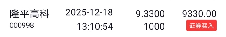 买入1格隆平高科。