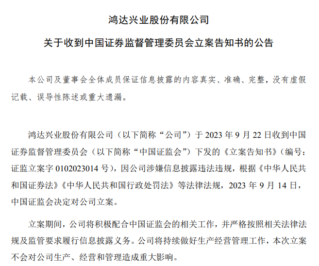 割肉清仓鸿达转债,因涉嫌信息披露违法违规,2023年9月14日中国证监会决定对鸿达兴业立案!!!!!!