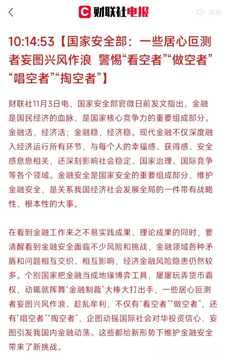 上升到囯家安全,坚定看好中国股市,让做空的那些家伙们颤抖吧……。