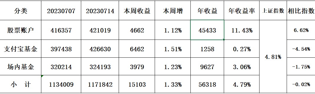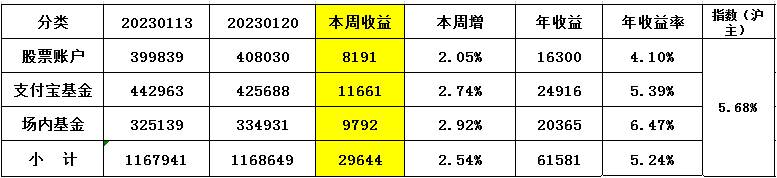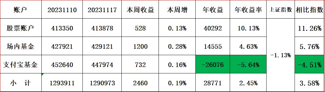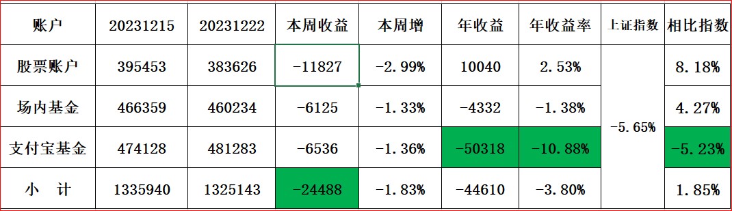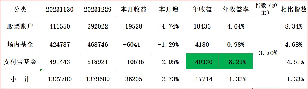 小账户钱少,从大账户持有的15个股票里面选了2只,一年操作很少反而效果不错。