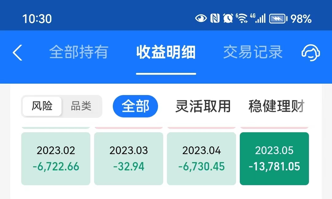 都知道P2 P叫做骗了又骗,但现在这批基金比P2 P骗得还惨,P2 P好歹暴雷后还给我留下20+万的收益。支付宝6年累计收益负,到哪里说理去。总收益-46元。