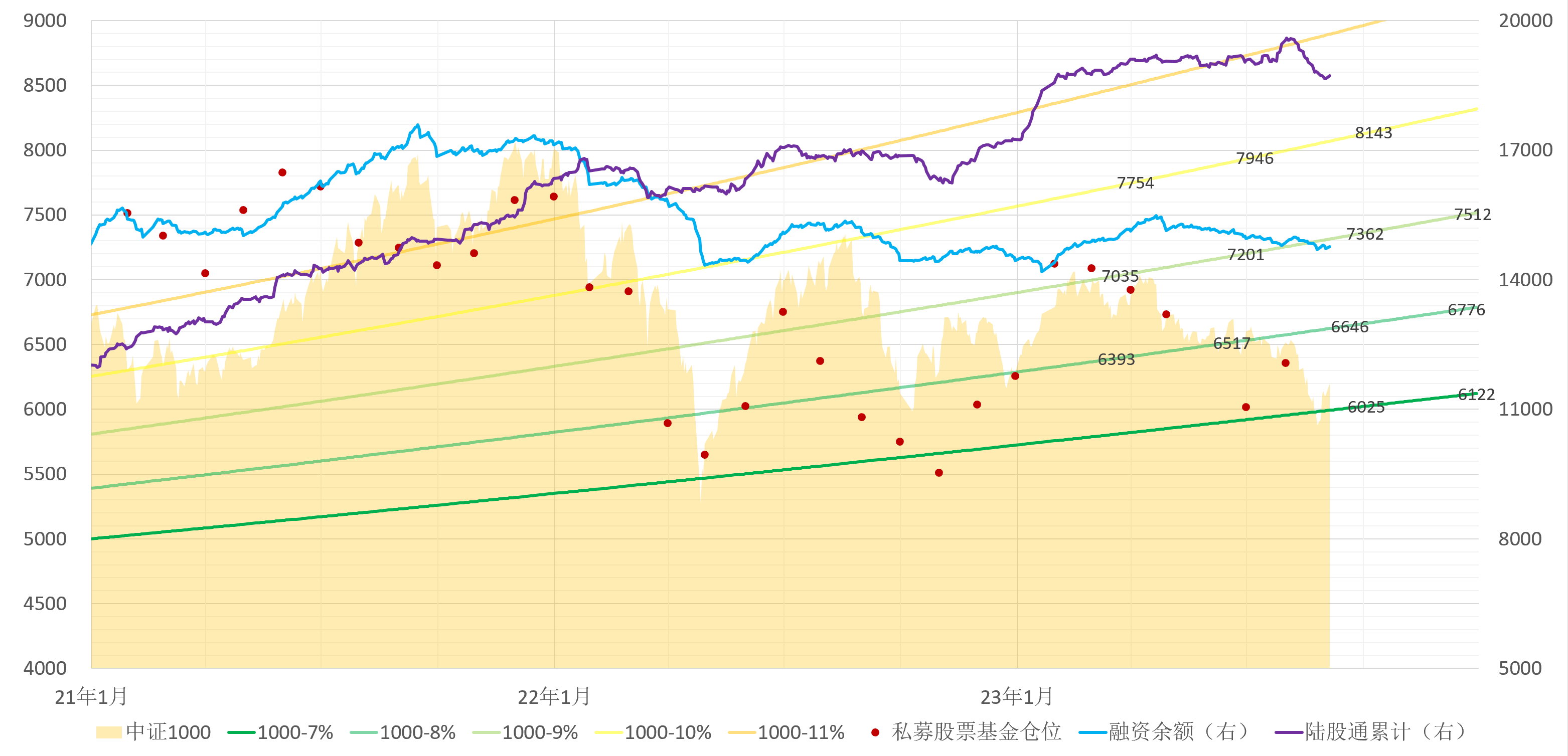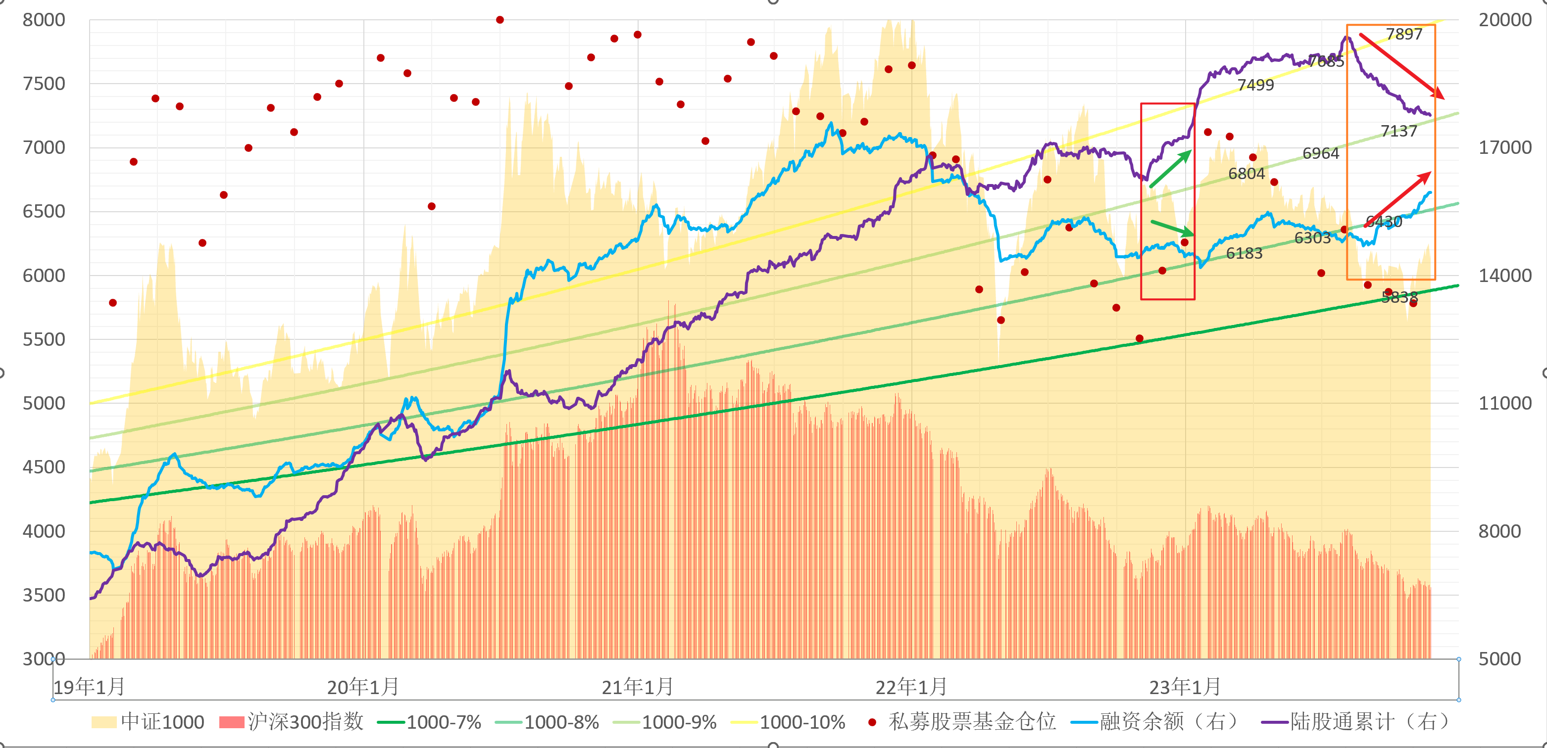 请教下楼主,图中数据是中证1000全收益指数,第二列为年化增幅(以2014年为起始),和楼主所说7%年化增幅相差很大,不知道楼主所说7%的增幅的依据是什么?用2012年、2018年最低点,按7%的年化增速,来计算2022年、2023年的最低点,