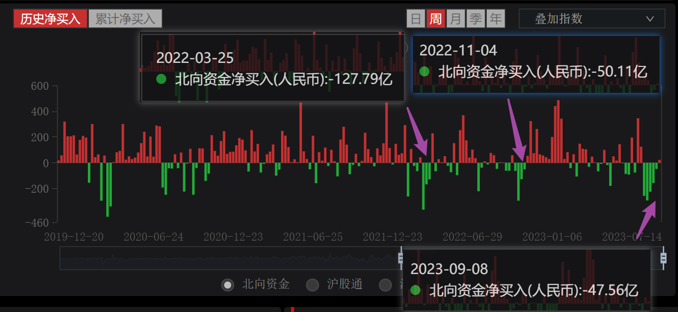 体现在每天的北向流出上,