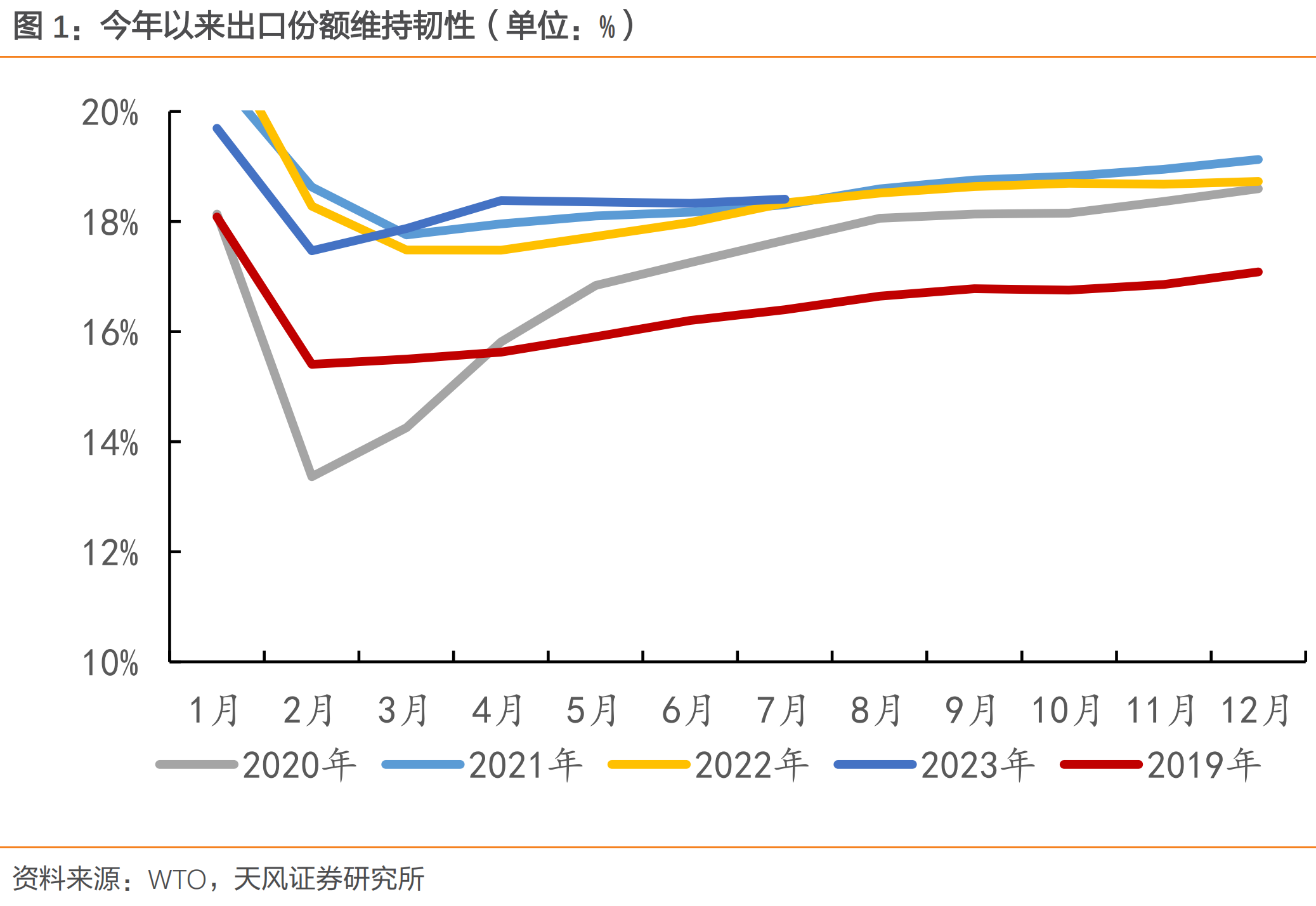出口的市占率在经过了疫情期间的红利期之后,现在占有率还高于高峰期的21年,韧性挺强的,比毛衣站之前的18年,市占率提高了不少。