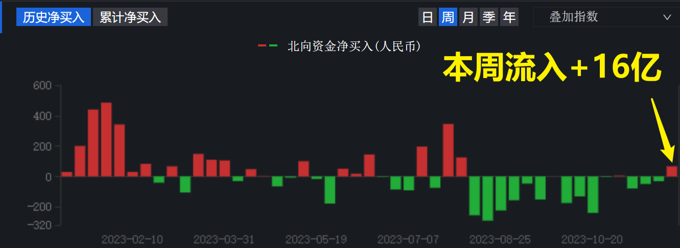 外资的连续流出已创历史最高,近期有点强弩之末的意思,流出减少,本周已持平,