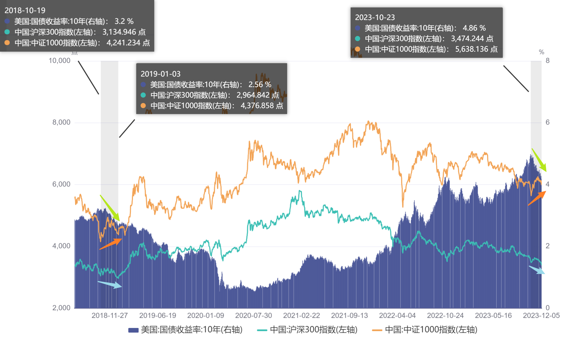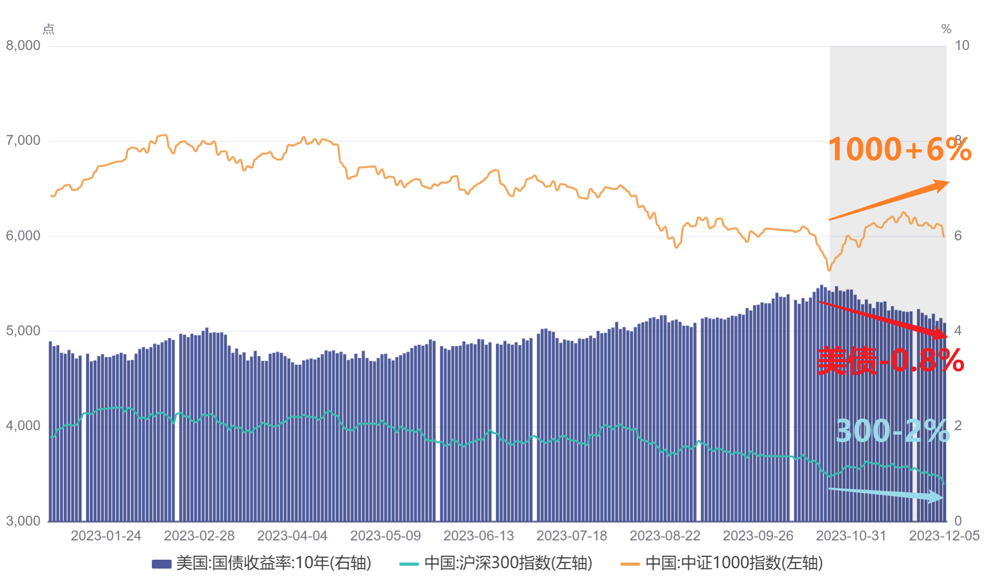 这次依然是美债已经下来很多了,1000也从低点反弹了6%,300击破低点2%。