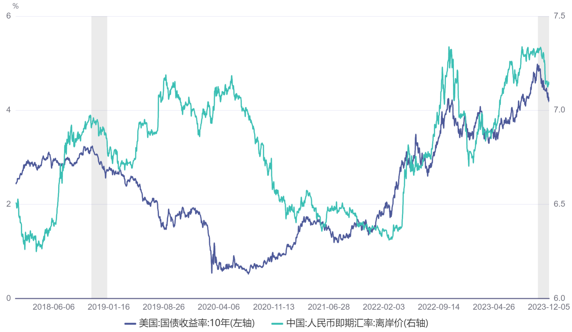 同期人民币汇率也开始升值。
