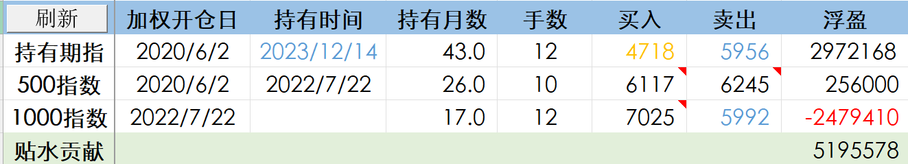 贴水收益在3月达到了500以后,停滞不前很久了,现在稍微有一点了,也行吧。