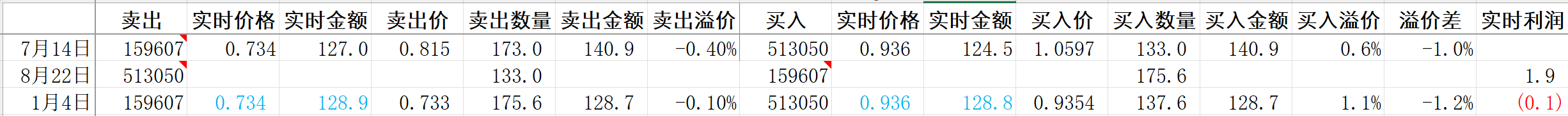 513050的溢价已经跌至1%,把159607换过去,等溢价高了再换回来。