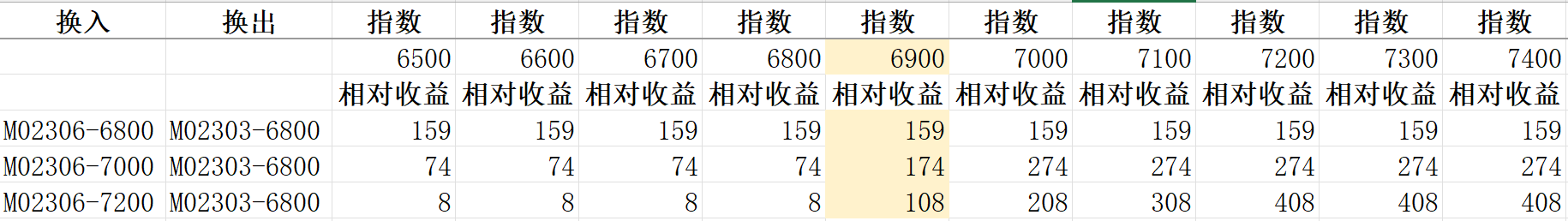 有174点相对收益,差不多相当于174点贴水了。