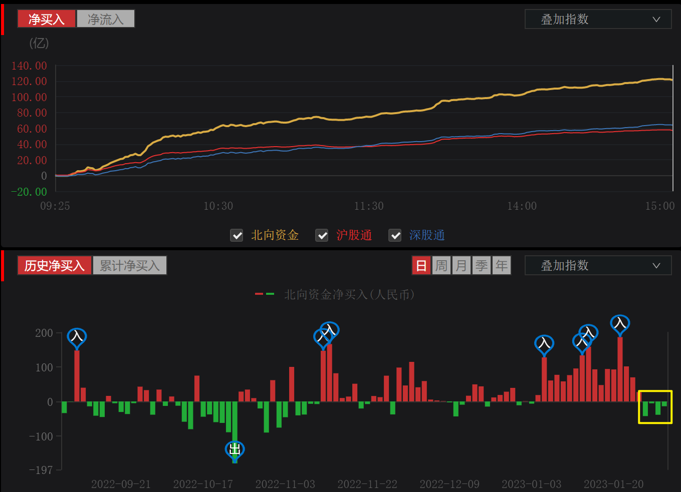 指数图更新了一下,把北上资金也加上去了。