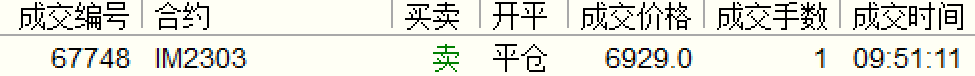 上午6929平仓1手IM,这1手是春节前6464买入投机的,两会前平仓。
