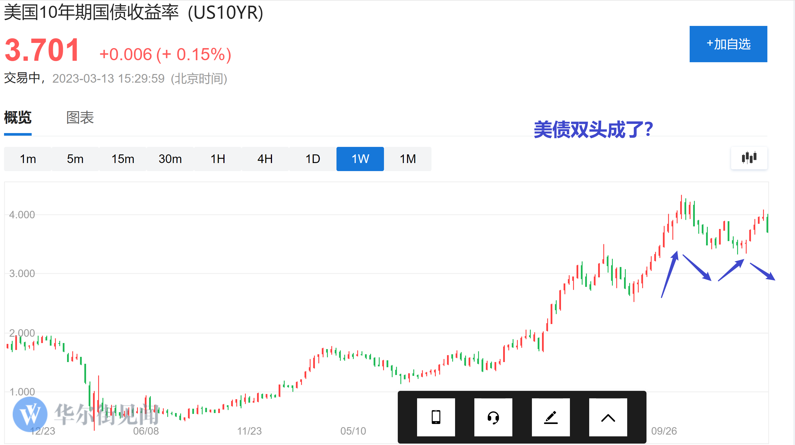 美债收益率有M头形态。