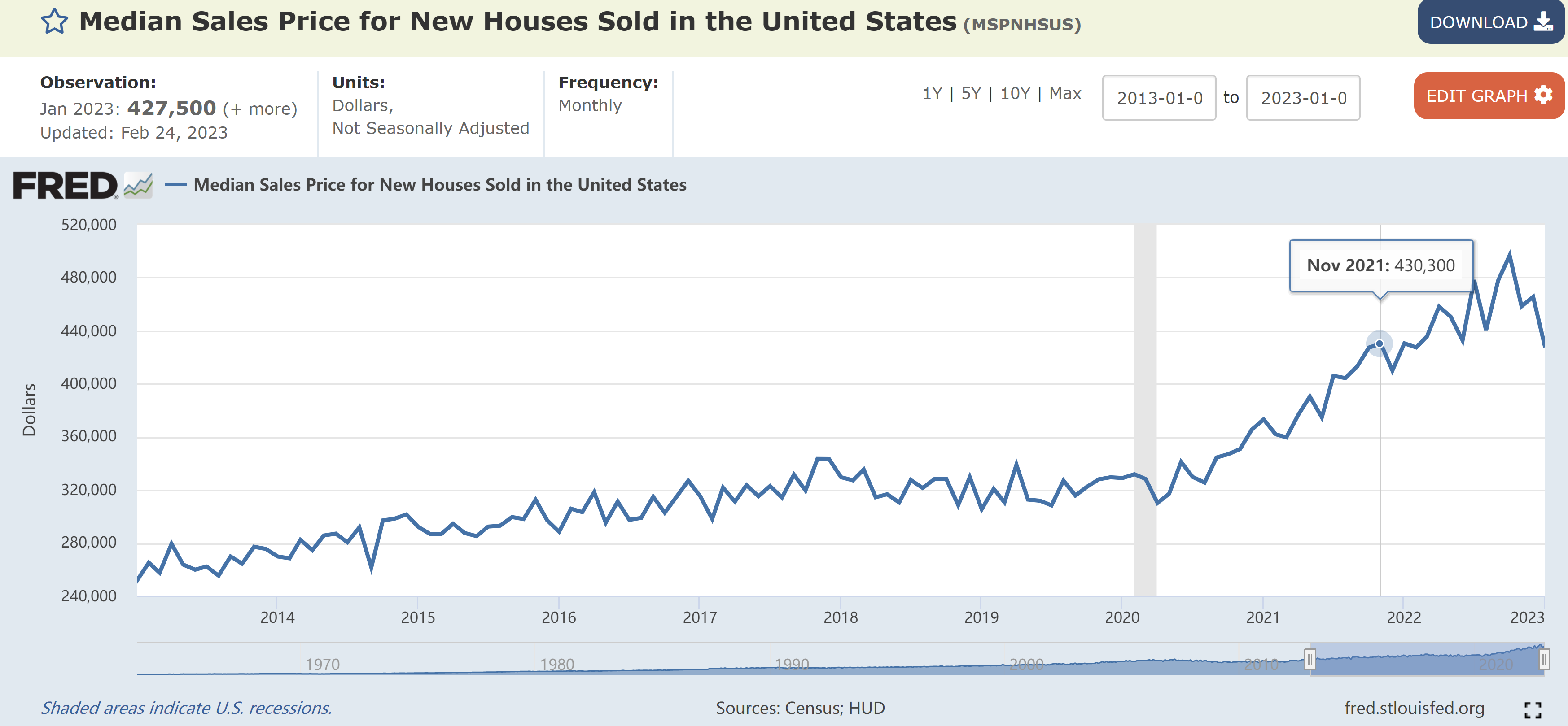 美国房价中位数也跌回了2021年。