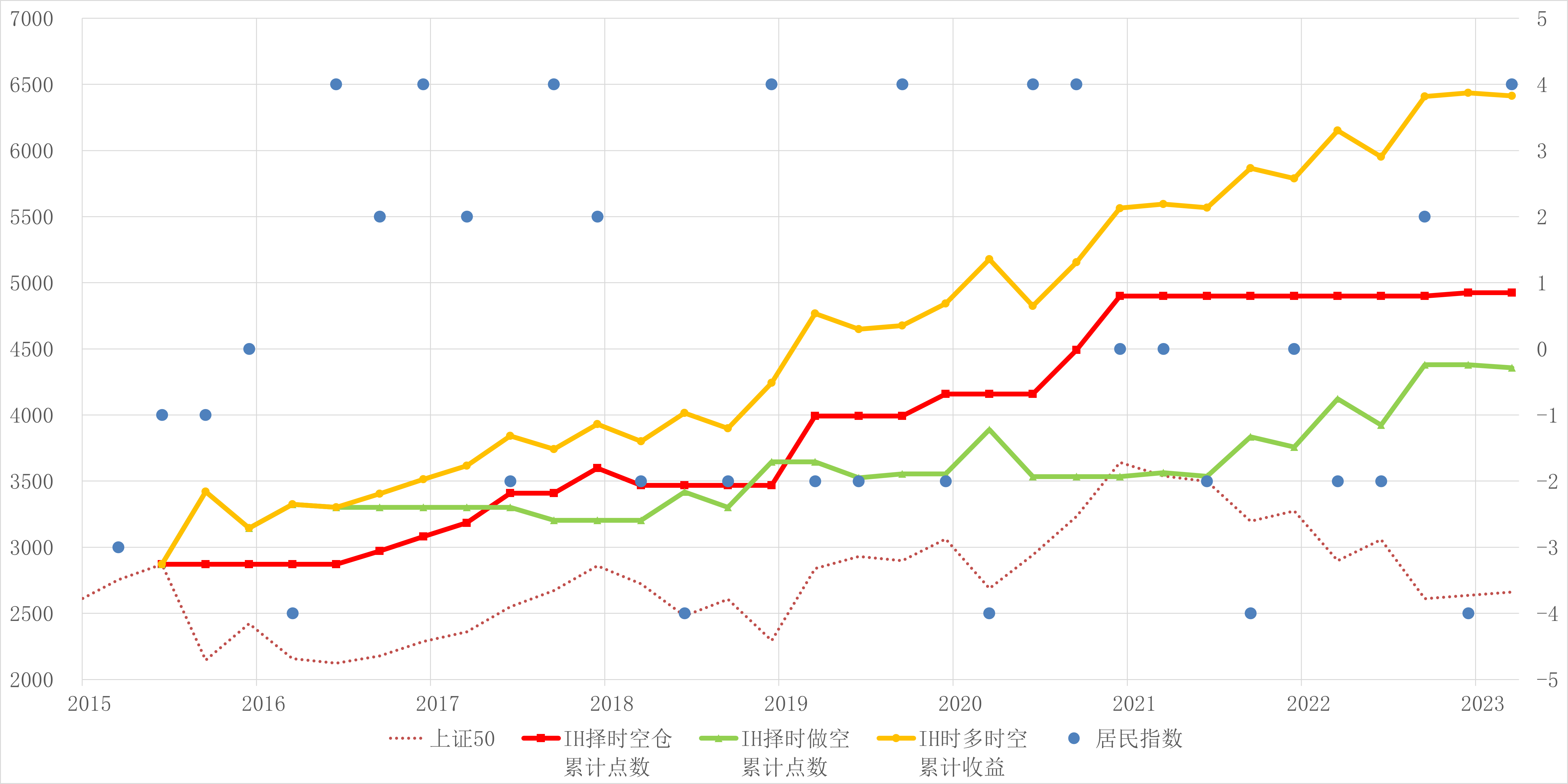 2023年4月25日更新:组合策略组合策略:先把现有的跑的还不错的策略IC长持保留下来,已经是舒适区了,万一以后慢牛了,得确保有一定仓位;其次择时策略里面收益最高的多IC择时空IF/IH,肯定要加进去,牛市基本同步,熊市避开大半;再次择时策略里面胜率最高的择时做多IF/IH,可以作为投机仓位。(实操中IC已经升级为IM)一个简单的思路是三个各占⅓;一个升级的思路是:1. IC长持:占40%,哥们...居民指数是啥啊